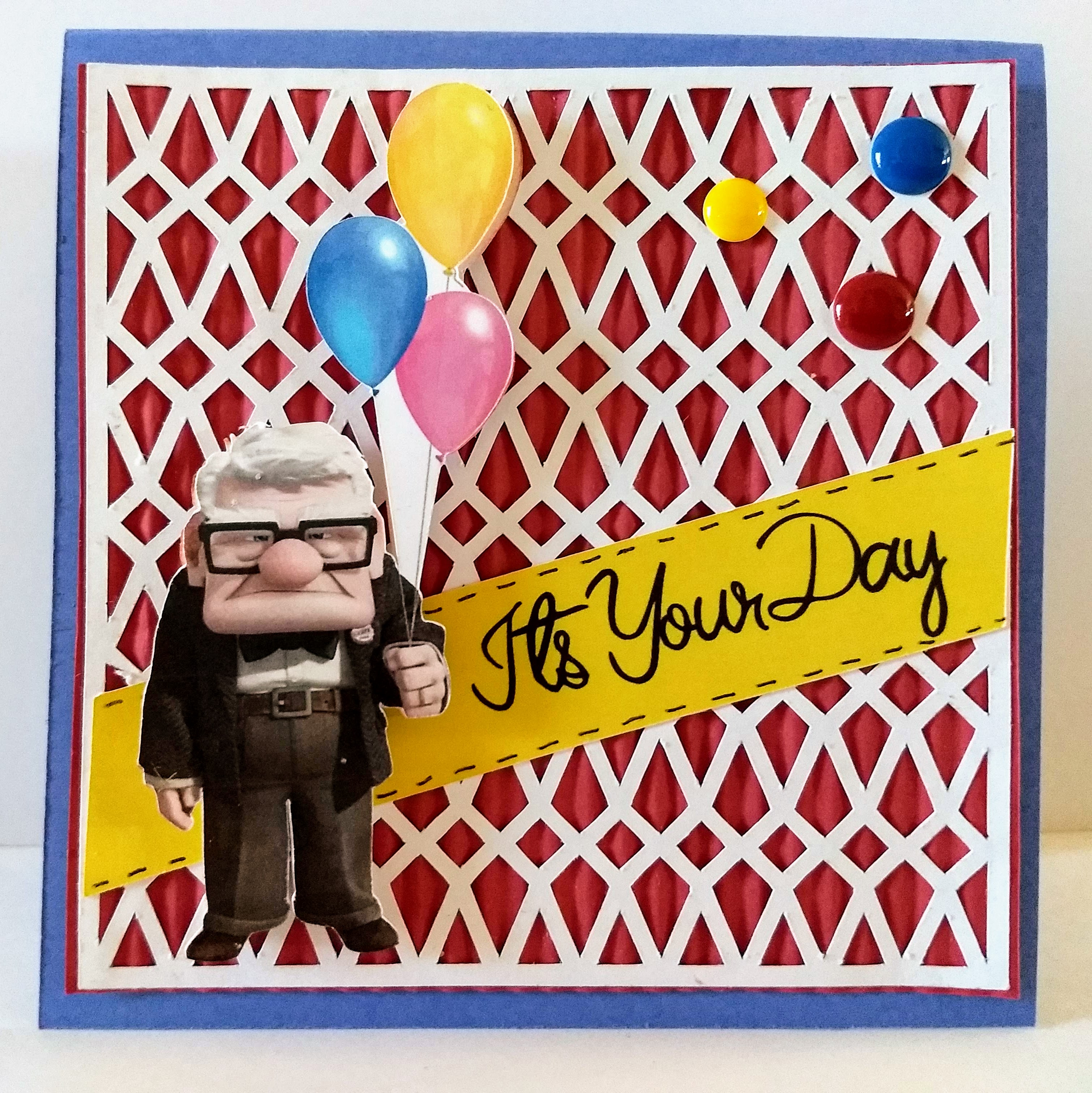 I made this card for my son's birthday using the little guy from "Up". I crimped the paper behind the overlay and stretched the rectangle to make a banner. This is an easy card to make. This is for a challenge over at BBTB2. Come on over and join us. Tfl